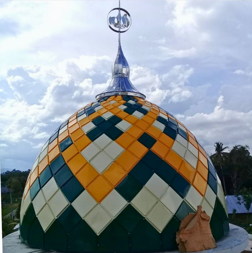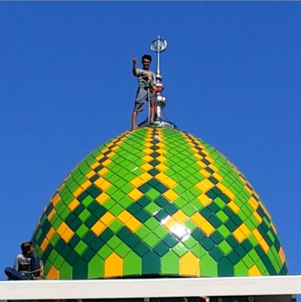 “Alhamdulillah hasil kubahnya sangat memuaskan. Warnanya berkilau, desainnya sesuai gambar, dan terlihat megah sekali dari jalan raya. Jamaah banyak yang kagum!”